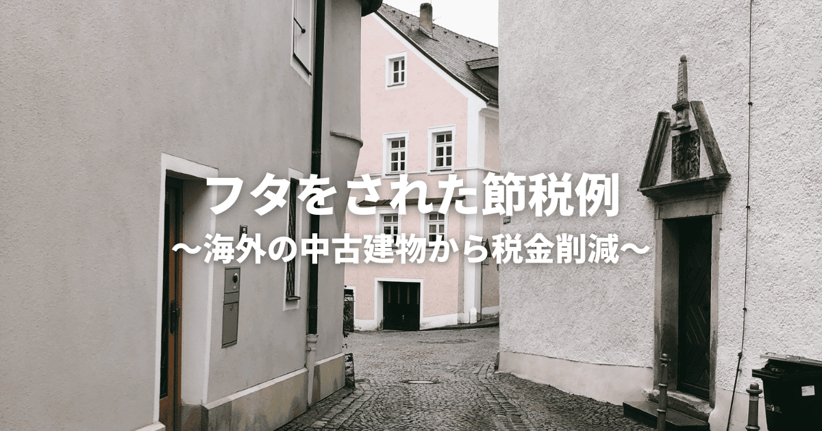 ひとつの例は、個人が海外の中古建物を買って、不動産所得と給与所得をぶつけて税金を減らす方法です。